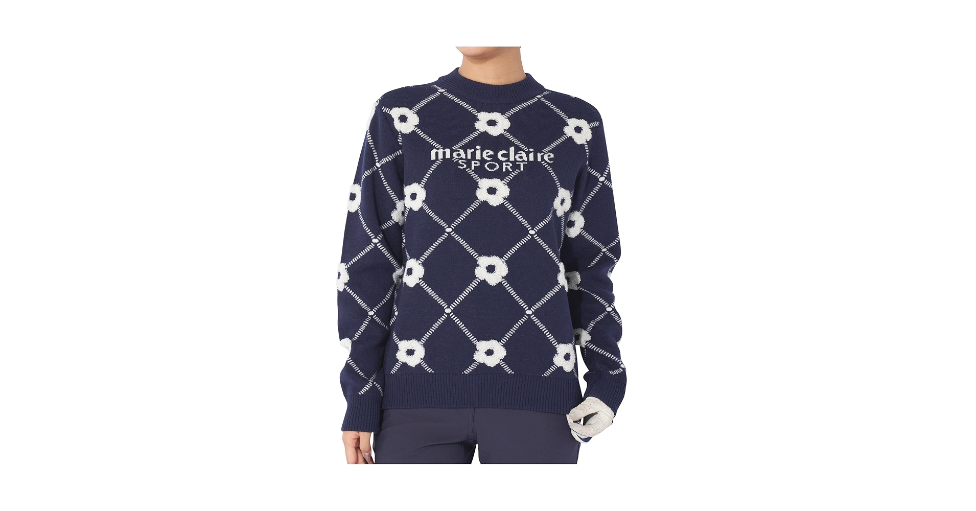 格子柄にパイルで凹凸感のある花柄がポイントのニット。秋冬のゴルフウェアを華やかにグレードアップします。ウールが入っているので保温性が高く軽量でしなやかなので、防寒性と動きやすさを兼ね備えています。